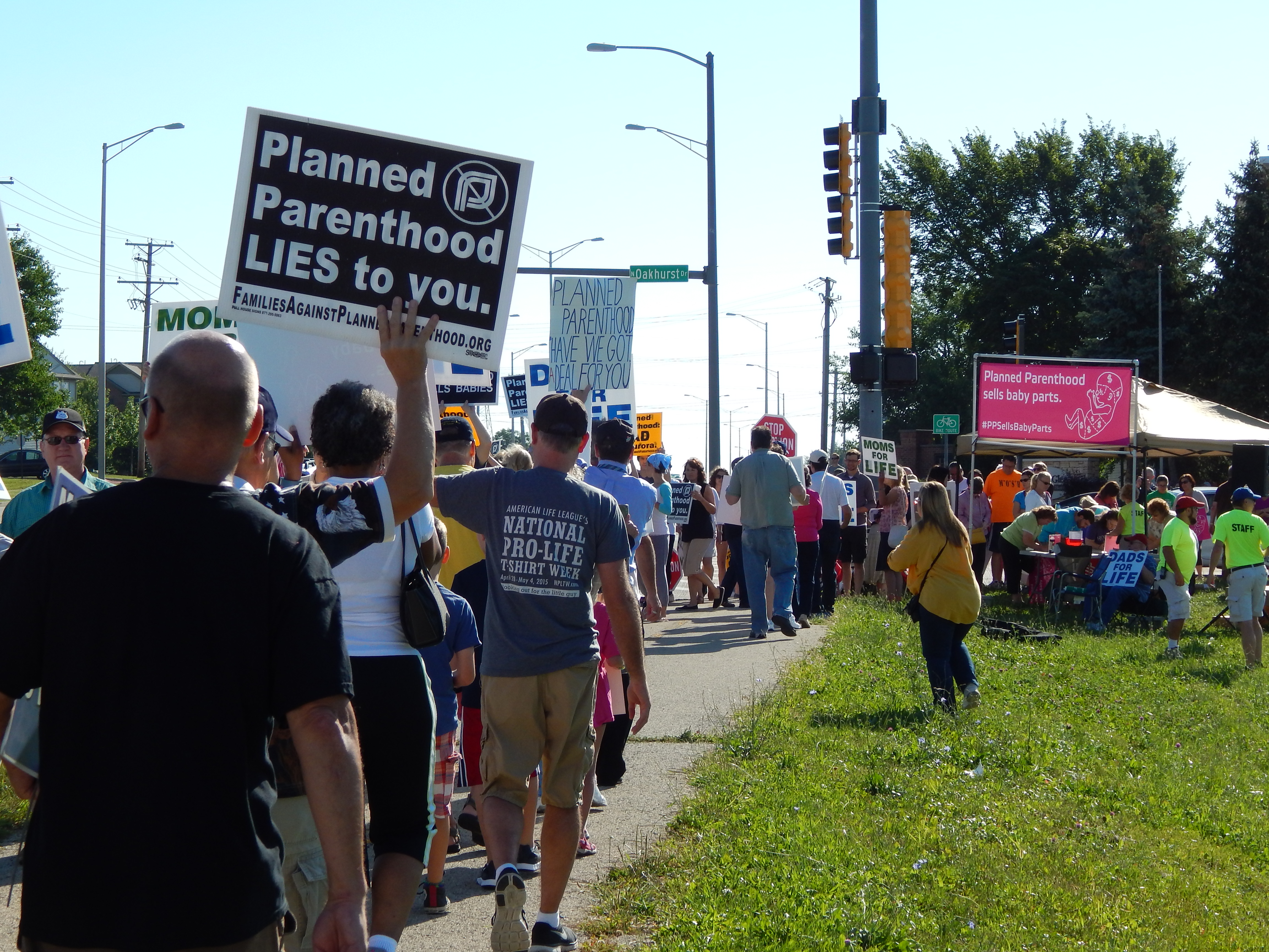 Across from the hedged Planned Parenthood compound protestors were praying and reading Scripture. As protestors walked the sidewalk along E. New York St., many were repeating the Rosary.