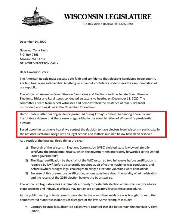 Added 1-13-2021, a letter sent to Wisc. Gov. and copied to V.P. Pence. Pence ignored this letter: