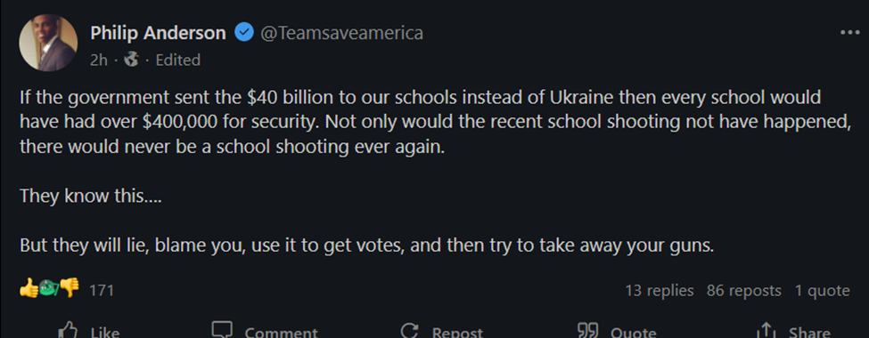 According to the [Daily Mail] article, Texas school officials had been monitoring students’ social media prior to the deadly shooting in Uvalde Tuesday – but failed to pick up on posts from the gunman who was openly bragging to friends by text and on social media that he had gotten an 18th birthday present to himself earlier this month – two AR-style rifles.