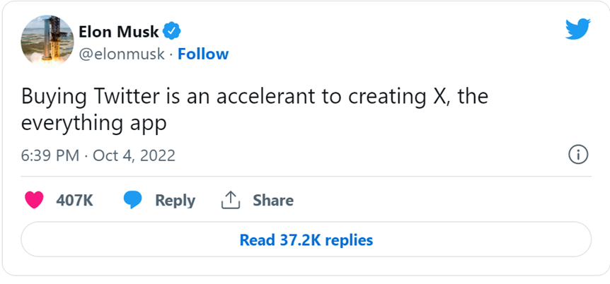 One can expect the “everything” app from transhumanism accelerant Elon Musk.