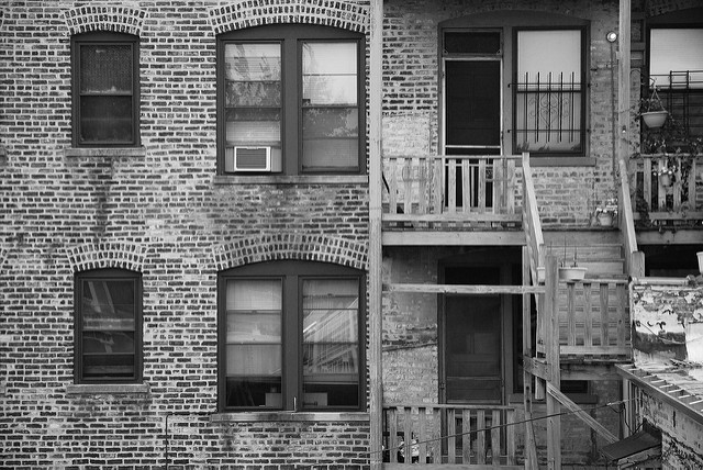 Across the alley from our three flat and the empty lots stood a four-story brick apartment building with the same grey connected porches. Clothes drying on clotheslines, dogs barking, kids running up and down stairs, people yelling, radios blasting, furniture moving up or down, and aromas of all kinds of food– the Chicago back porch, meant as a second fire escape, was where melting pot life vented.