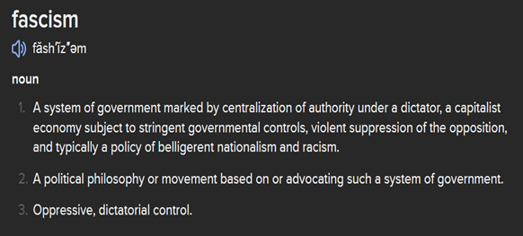 I reject Project ESG’s dictatorial control of life’s designs. I reject severe economic and social regimentation, and forcible suppression of opposition. Life is more than a checklist, more than a deterministic program designed to produce certain outcomes. I reject fascism.