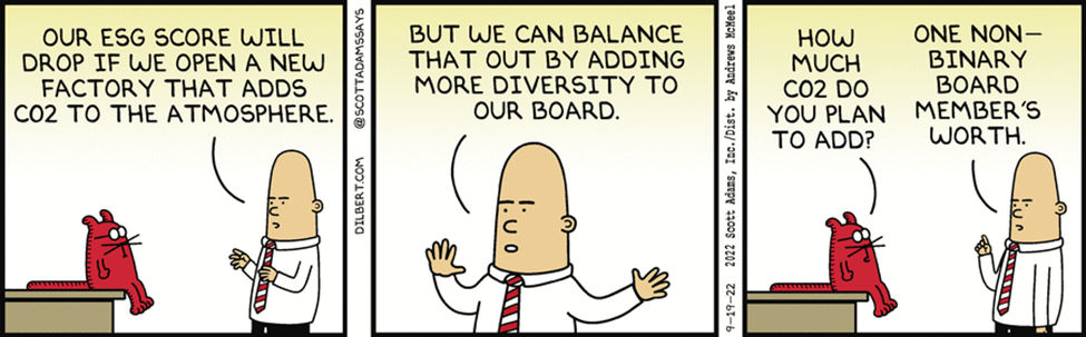 Project ESG elites talk of stakeholders (designers) finding new opportunities to create value. The values to be created are Project ESG elite values. But I do not share those values.