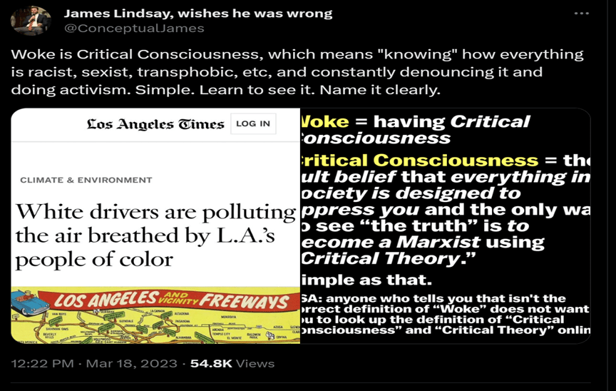 Recently, on Gab social media, Lindsay posted the following challenging the praxis of “Wokeism”: