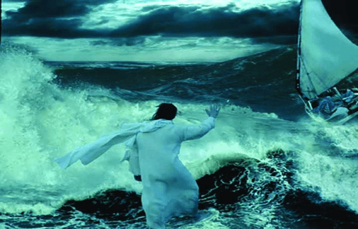 “Then, in the dead of night, we all thought we saw a ghost walking on the water. It was about to go past our boat. We were scared out of our wits. We were yelling “Who goes there?!” And then, just like that, we hear “Cheer up! It’s me. Don’t be afraid.” When the figure came closer we could see that it was Jesus. He was walking on the water!