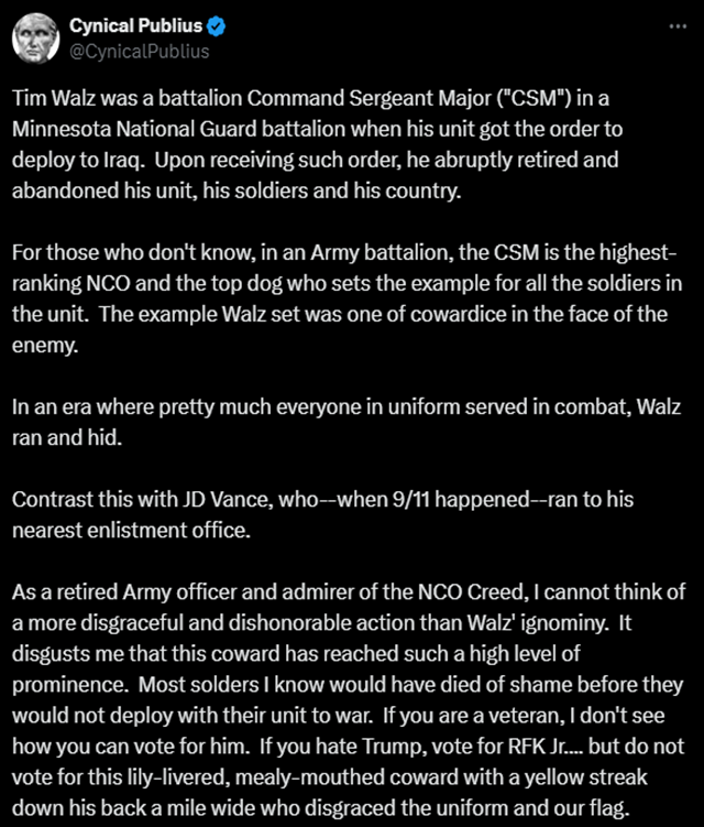 Unlike many of us including Trump, Tim Walz “never ran a business or worked long in the private sector. His entire career has been spent working for the government, either as a teacher or as a politician. His politics, despite a pivot to the middle while in Congress, are rooted in the far left.”