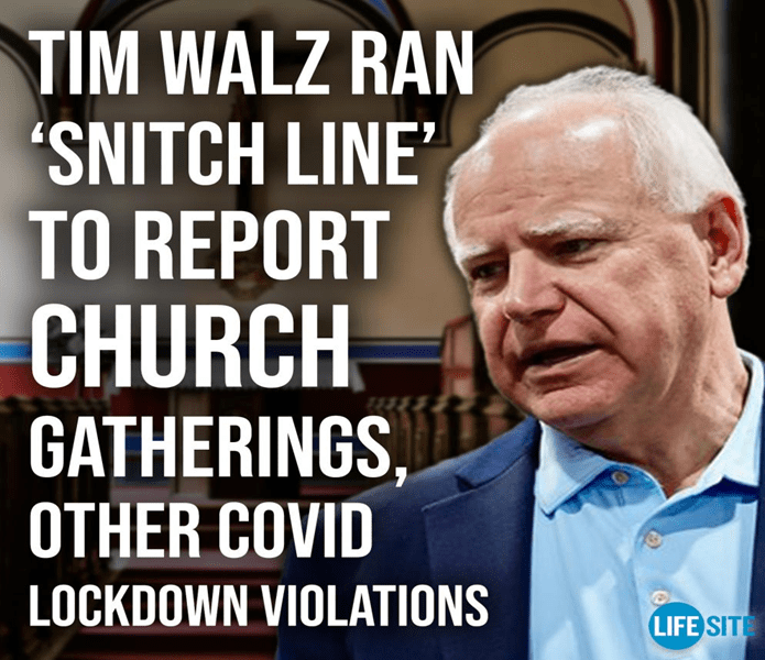 Tim Walz also created a phone line for people to snitch on their neighbors who violated COVID regulations.