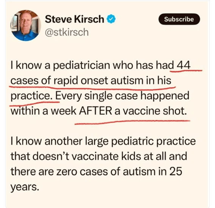 Then he drove the point home, contrasting the media’s obsession with measles to its silence on autism. (Emphasis mine.)