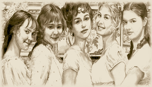 Enter the Bennet family with its five daughters: Jane, Elizabeth, Mary, Lydia, and Kitty.