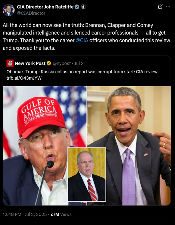 Barack Obama’s team is in full damage control mode after Director of National Intelligence Tulsi Gabbard declassified and released evidence that Obama and his top officials in his administration knowingly fabricated intelligence to push the false narrative that Trump was compromised by Russia—an operation designed to delegitimize his election and kneecap his ability to govern.